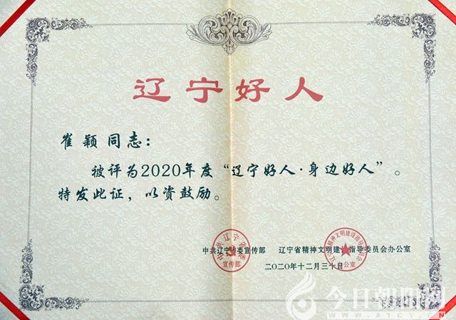 日前,中共遼寧省委宣傳部、省精神文明辦下發(fā)了《關(guān)于表彰2020年度“遼寧好人·身邊好人”的決定》文件,北票市中心醫(yī)院宣傳科科長崔穎憑借突出表現(xiàn)獲此殊榮。