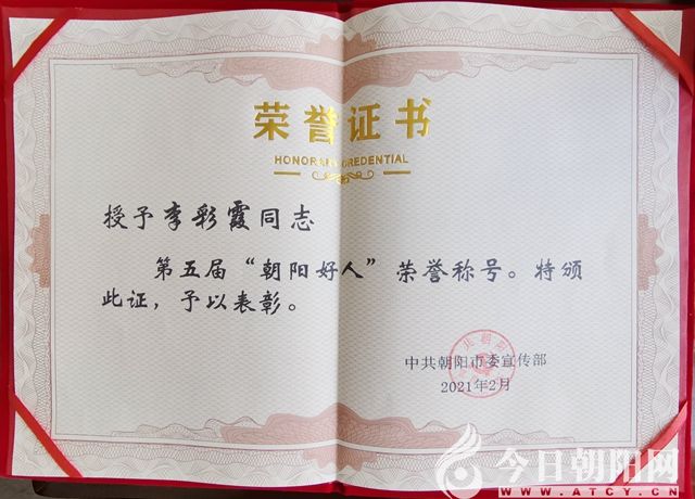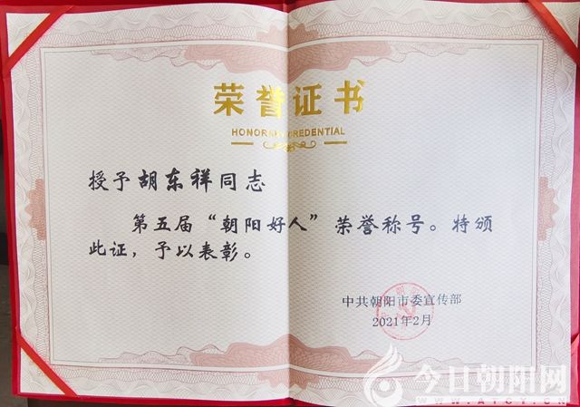 與此同時,崔穎還經(jīng)常去慰問鄉(xiāng)村、社區(qū)低保戶,去敬老院關(guān)愛老人,讓志愿服務(wù)常態(tài)化,用實際行動感召他人,傳遞社會正能量。他在妻子所開的酒店開展了“德耀北票·道德活動日”主題活動。在每月5號的全市“道德活動日”當(dāng)天,免費為環(huán)衛(wèi)工人提供愛心早餐,以此表達(dá)對環(huán)衛(wèi)工人的敬意。從2017年5月份開始到2018年7月,連續(xù)開展了15個月的“道德活動日”為環(huán)衛(wèi)工人免費提供早餐服務(wù)。近年來,崔穎所奉獻的志愿服務(wù)資金累計達(dá)10萬余元,他的家庭也被評為“朝陽市文明家庭”。