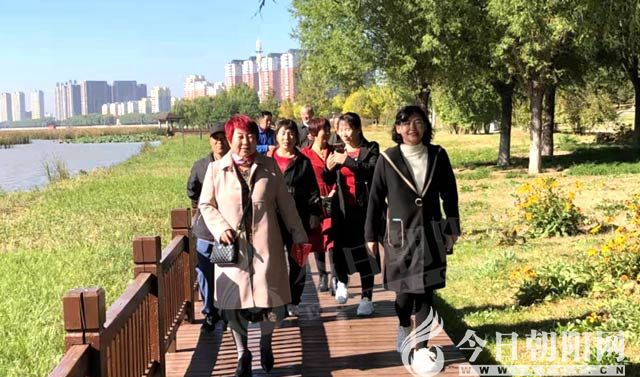 8時(shí)30分,一行人來到朝陽市燕都大橋東北側(cè)的音樂噴泉廣場(chǎng),沿朝陽大凌河玉龍湖北岸觀光瀏覽。欣賞著家鄉(xiāng)的美景,朗誦自己創(chuàng)作的詩詞,載歌載舞,歌頌偉大的中國共產(chǎn)黨,歌頌偉大的祖國。