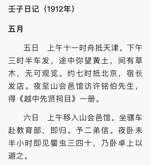 真實(shí)的《魯迅日記》片段:月份寫在每個(gè)月的日記內(nèi)容之前。
