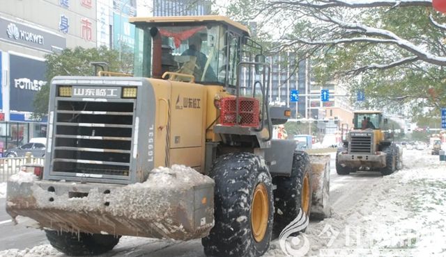 截至8日中午,經(jīng)過環(huán)境集團一天兩夜的艱苦努力,市區(qū)主要街路已見黑色路面,具備基本通行條件。