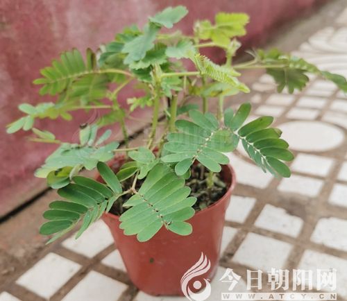 今天放學回家,我發(fā)現(xiàn)我家窗臺上多了一盆花,好奇地用手摸一下花葉,那葉子馬上就聚攏起來,好像打蔫兒了一樣,可過一會兒葉子又舒展開來。我大聲喊:“媽媽,這花葉一碰就蔫吧了,這是什么花呀?”媽媽說這花叫含羞草。