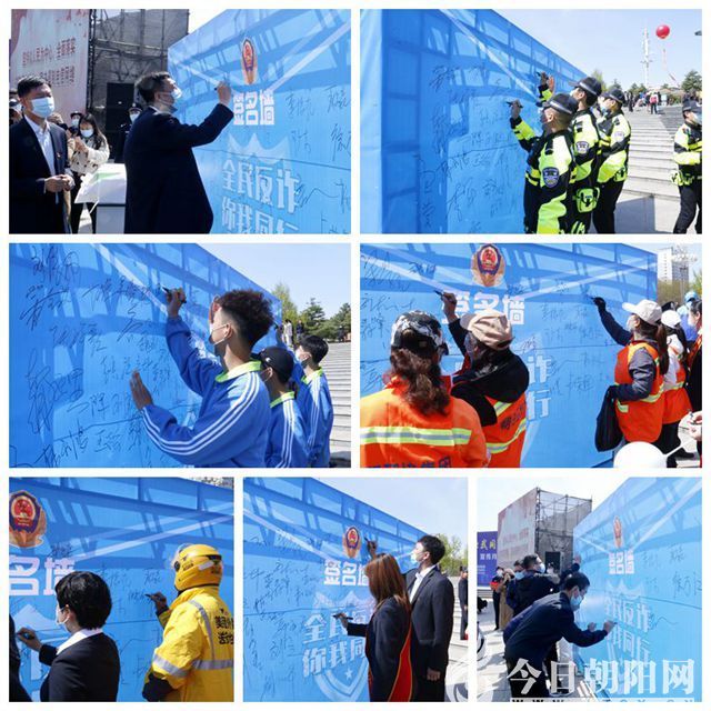 儀式結(jié)束后,進(jìn)行了“反詐人民戰(zhàn)爭”千人簽名活動。隨后,市領(lǐng)導(dǎo)到宣傳展區(qū)視察,并與現(xiàn)場群眾交流互動。
