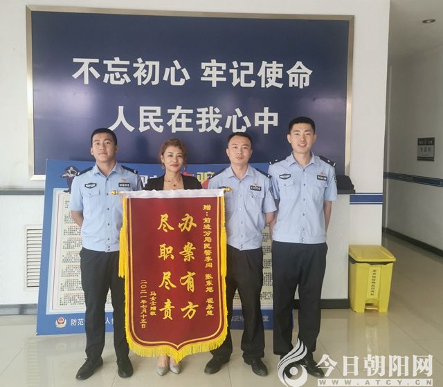 補(bǔ)記:7月16日下午15時(shí)34分,李全奎副局長(zhǎng)在微信上轉(zhuǎn)來一張照片,是某當(dāng)事人家屬給當(dāng)日值班民警送錦旗的場(chǎng)景。從左至右的民警依次是:李闖,翟永慧,張東旭。因?yàn)榕c記者“警營(yíng)一日”體驗(yàn)活動(dòng)有關(guān),特意將此照片收錄在文章結(jié)尾,以示敬意!