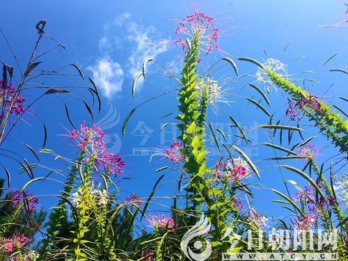 道路兩邊有醉蝶花,也曾見過此花,卻未曾見過這么多株?;ㄇo較長,花朵在頂端,花瓣微卷,或紅或白或紫?;ㄈ缙涿?,蝶飛蜂舞,吸引了眾多游客。