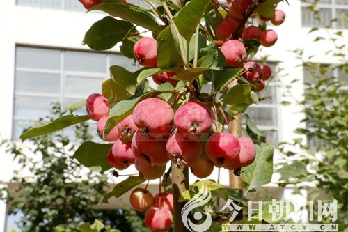 金風(fēng)送爽,碩果累累。遼寧省朝陽(yáng)工程技術(shù)學(xué)校校園里的海棠果掛滿(mǎn)枝頭,色澤瑩潤(rùn),小巧玲瓏,宛若一串串精美的瑪瑙。綠瑩瑩的葉子,紅艷艷的果實(shí),繪就一幅色彩斑斕的迷人畫(huà)卷。