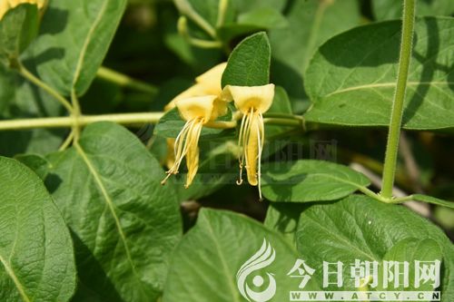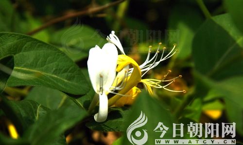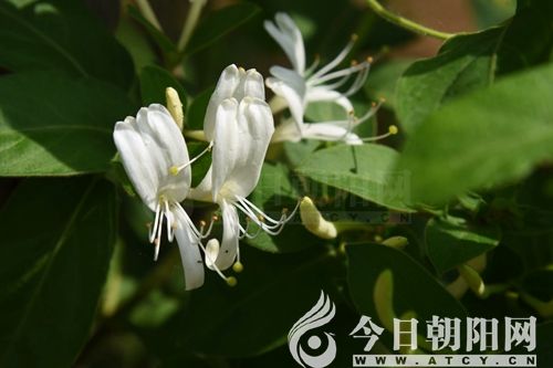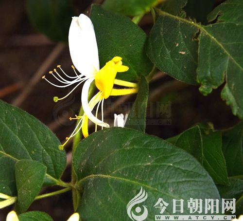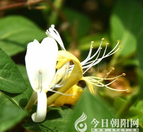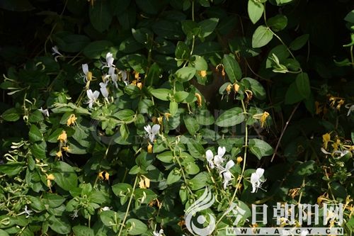 金銀花 ,又名忍冬、雙花等。“金銀花”一名出自《本草綱目》,三月開花,微香,蒂帶紅色,花初開則色白,經(jīng)一、二日則色黃,故名金銀花。又因?yàn)橐坏俣?,兩條花蕊探在外,成雙成對(duì),形影不離,狀如雄雌相伴,又似鴛鴦對(duì)舞,故有鴛鴦藤之稱。