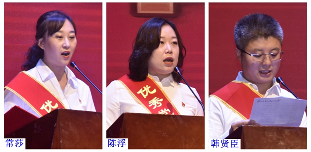 下午1時(shí)30分,大會(huì)在莊嚴(yán)的國(guó)歌聲中開(kāi)幕。市衛(wèi)健委黨組成員張海林宣讀了《中共朝陽(yáng)市衛(wèi)生健康委員會(huì)黨組關(guān)于表彰優(yōu)秀共產(chǎn)黨員、優(yōu)秀黨務(wù)工作者和先進(jìn)黨組織的決定》,對(duì)50名優(yōu)秀黨員、18名優(yōu)秀黨務(wù)工作者和15個(gè)先進(jìn)黨組織予以表彰。委領(lǐng)導(dǎo)為受表彰的優(yōu)秀個(gè)人和先進(jìn)集體代表頒獎(jiǎng)。朝陽(yáng)市第二醫(yī)院護(hù)理部護(hù)士長(zhǎng)常莎、朝陽(yáng)市中心醫(yī)院辦公室主任陳浮、朝陽(yáng)市衛(wèi)生健康監(jiān)督中心第三黨支部書(shū)記韓賢臣分別代表優(yōu)秀共產(chǎn)黨員、優(yōu)秀黨務(wù)工作者、先進(jìn)黨組織發(fā)言。