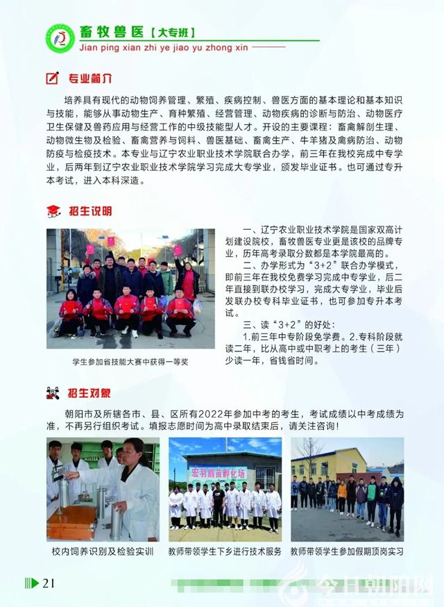 6月12日,本網(wǎng)編輯從遼寧省建平縣職教中心獲悉,該校2022年秋季招生工作已全面啟動(dòng),報(bào)名時(shí)間為2022年6月18日至8月18日。為方便廣大學(xué)生、家長(zhǎng)及社會(huì)各界人士及時(shí)了解相關(guān)信息,本網(wǎng)特將招生簡(jiǎn)章分享如下,歡迎關(guān)注轉(zhuǎn)發(fā)!