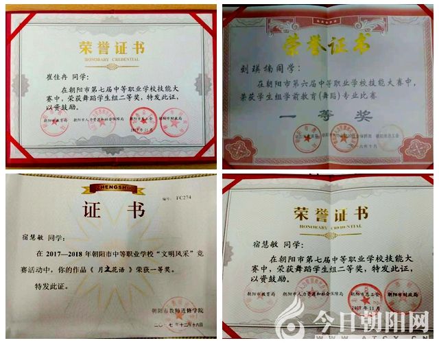 學(xué)前教育專業(yè)部分學(xué)生獲獎證書。