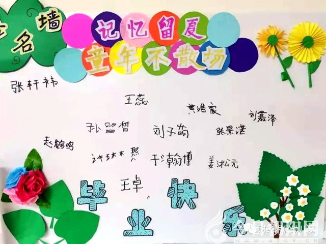 在班級里,大班的老師和同學們進行了畢業(yè)簽名活動,留下了美好溫馨的童年記憶。