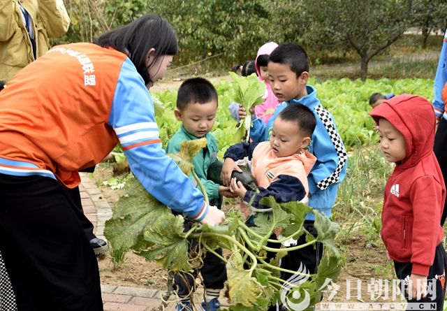 “我把白菜拔下來了!”“老師,你看這個瓜真大??!”9月22日上午,遼寧朝陽紅纓幼兒園的孩子們正在種植園內(nèi)采摘蔬菜,體驗豐收的喜悅。