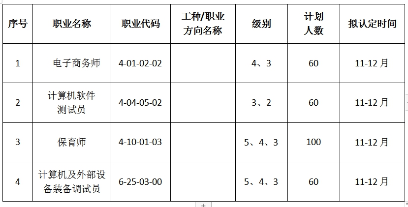 一、職業(yè)技能等級認(rèn)定職業(yè)(工種)目錄及計(jì)劃