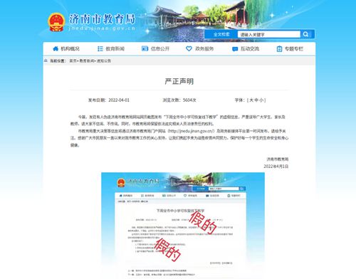 同時,朝陽市網(wǎng)信辦發(fā)現(xiàn),此信息最初為偽造濟南市教育局網(wǎng)站網(wǎng)頁截圖進行發(fā)布,濟南市教育局官網(wǎng)已于今日對虛假信息進行了辟謠。
