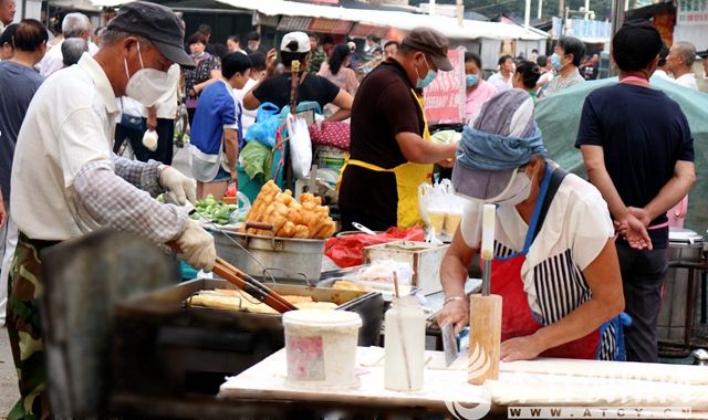早市上油條、包子、豆腐腦等經(jīng)濟(jì)實(shí)惠的早點(diǎn)特別受歡迎,有些無暇做飯的上班族常常是以在早市吃上一碗豆腐腦、幾個(gè)包子,作為一天的開始。