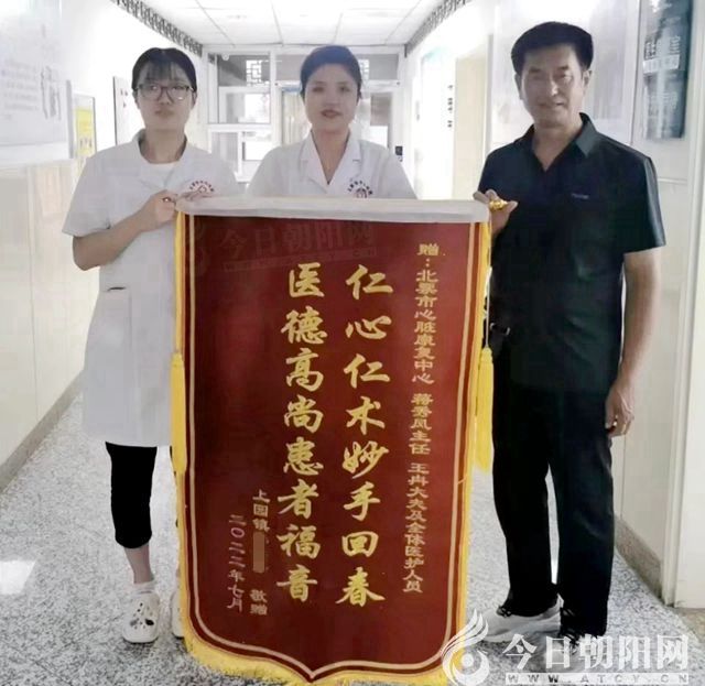 近日,出院患者李某家屬將一面印有“仁心仁術(shù)妙手回春,醫(yī)德高尚患者福音”的大紅錦旗,送到了遼寧省北票市中心醫(yī)院心臟康復(fù)科主任蔣秀鳳和王冉醫(yī)生手中,衷心感謝全體醫(yī)護人員對患者的精心治療和暖心護理。