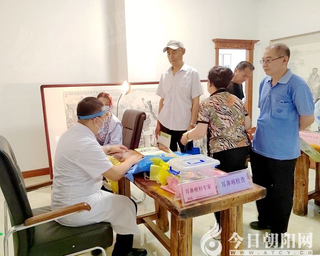 8時30分,朝陽四院西梁分院負責(zé)人姚磊組織老年醫(yī)學(xué)科、內(nèi)科、耳鼻喉科、彩超室的10名醫(yī)護人員來到朝陽市老年書畫研究會,布置場地,架設(shè)儀器,為到場的老年人進行逐項檢查。