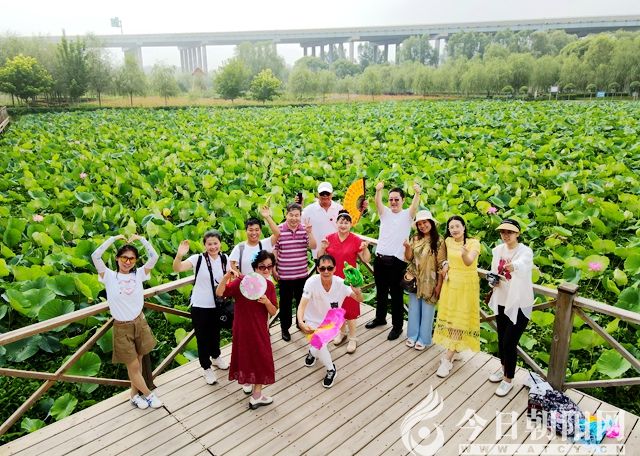 一行人先后到北票市涼水河濕地、燕湖園、知青部落等地進(jìn)行了采風(fēng)。涼水河是遼西重要水源地白石水庫(kù)上游入庫(kù)主要河流之一,濕地公園建成后,生態(tài)環(huán)境得到很大改善。盛夏時(shí)節(jié),草木蔥蘢。濕地的荷花開得正盛,吸引眾多游客前來(lái)觀賞。