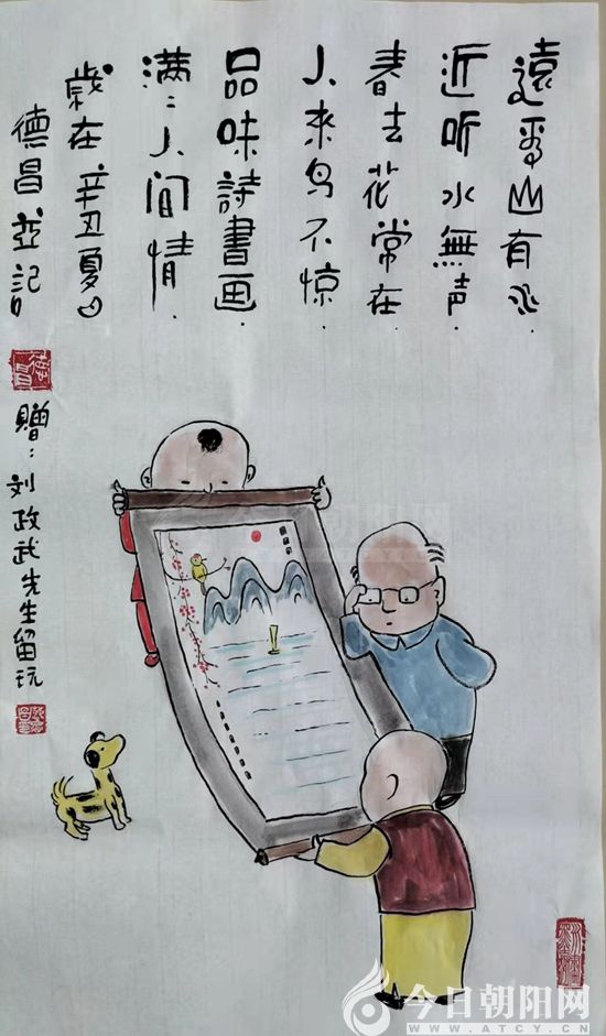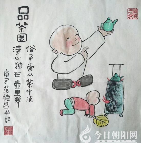 范德昌,今日朝陽網(wǎng)文化信使,1955年生于山東濰坊,自幼酷愛書畫?,F(xiàn)為山東省美術(shù)家協(xié)會會員,山東省漫畫協(xié)會理事兼副秘書長,漫畫人生指導(dǎo)老師,《婦女雜志》《女人觀天下》等報刊簽約畫家。30多年來,在全國160余家報刊發(fā)表作品6000余件,260余次獲獎。1994年至今,已岀版12本個人畫集。40多件作品被日本、韓國、新加坡和中國臺灣、香港的企業(yè)家及朋友收藏,被多家新聞媒體譽為扎根基層的民俗畫家,被評為“山東省百名讀書人物”和提名為“百名文化名人”。風(fēng)格獨特、個性鮮明的水墨小品,貼近生活,寓教于樂,深受大眾喜愛。事跡和畫作被收編入《中國人才薈萃》、《二十一世紀人才庫》等8本辭書和傳記,18幅孝文化作品被收編于《銀齡書畫冊》。