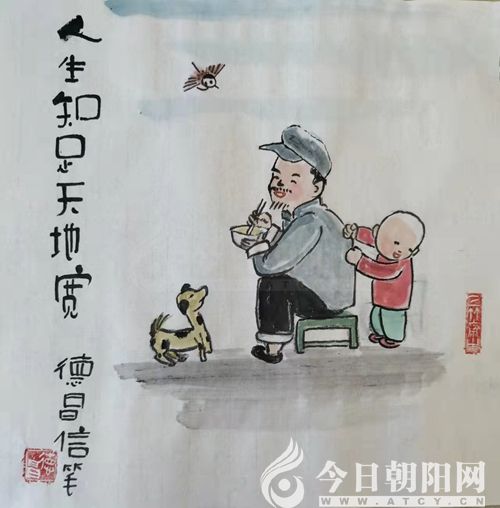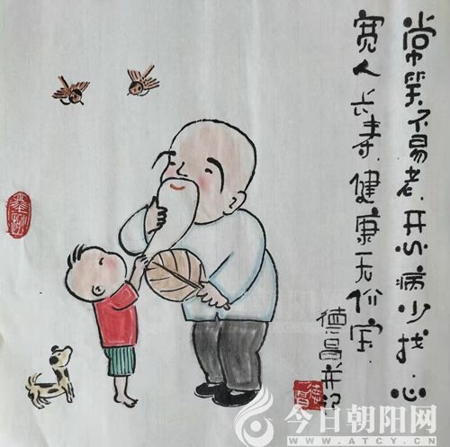 范德昌,今日朝陽網(wǎng)文化信使,1955年生于山東濰坊,自幼酷愛書畫?,F(xiàn)為山東省美術(shù)家協(xié)會會員,山東省漫畫協(xié)會理事兼副秘書長,漫畫人生指導老師,《婦女雜志》《女人觀天下》等報刊簽約畫家。30多年來,在全國160余家報刊發(fā)表作品6000余件,260余次獲獎。1994年至今,已岀版12本個人畫集。40多件作品被日本、韓國、新加坡和中國臺灣、香港的企業(yè)家及朋友收藏,被多家新聞媒體譽為扎根基層的民俗畫家,被評為“山東省百名讀書人物”和提名為“百名文化名人”。風格獨特、個性鮮明的水墨小品,貼近生活,寓教于樂,深受大眾喜愛。事跡和畫作被收編入《中國人才薈萃》、《二十一世紀人才庫》等8本辭書和傳記,18幅孝文化作品被收編于《銀齡書畫冊》。