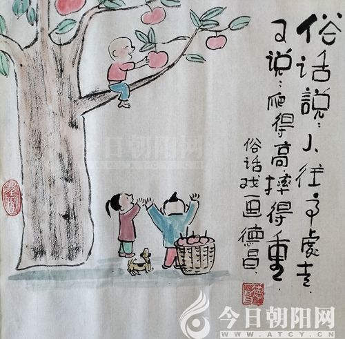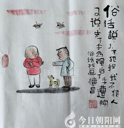 范德昌,今日朝陽網(wǎng)文化信使,1955年生于山東濰坊,自幼酷愛書畫?,F(xiàn)為山東省美術(shù)家協(xié)會會員,山東省漫畫協(xié)會理事兼副秘書長,漫畫人生指導(dǎo)老師,《婦女雜志》《女人觀天下》等報刊簽約畫家。30多年來,在全國160余家報刊發(fā)表作品6000余件,260余次獲獎。1994年至今,已岀版12本個人畫集。40多件作品被日本、韓國、新加坡和中國臺灣、香港的企業(yè)家及朋友收藏,被多家新聞媒體譽為扎根基層的民俗畫家,被評為“山東省百名讀書人物”和提名為“百名文化名人”。風(fēng)格獨特、個性鮮明的水墨小品,貼近生活,寓教于樂,深受大眾喜愛。事跡和畫作被收編入《中國人才薈萃》、《二十一世紀人才庫》等8本辭書和傳記,18幅孝文化作品被收編于《銀齡書畫冊》。