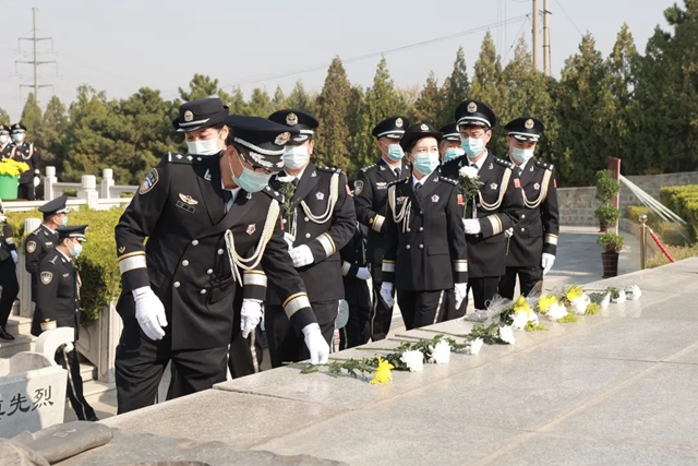清晨,市公安局民警代表整齊集結(jié)在市烈士陵園廣場(chǎng)前。高聳的人民英雄紀(jì)念碑頂,冉冉升起的朝陽(yáng)灑下金色的光輝,耀眼奪目、絢麗燦爛,一如對(duì)革命烈士戎馬一生、忠烈可嘉的贊頌!