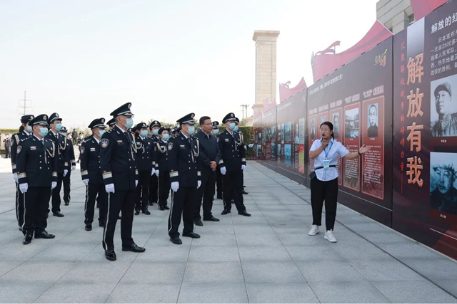 儀式結(jié)束后,全體民警來到革命烈士紀(jì)念館。在廣場(chǎng)前,佇立著一塊塊寫滿朝陽(yáng)紅色革命歷史的英烈事跡展板,隨著解說員的細(xì)致講解,英雄往昔、革命歲月又浮現(xiàn)在大家眼前。銘記紅色歷史,不忘崢嶸來時(shí)路,吾輩當(dāng)自強(qiáng)!