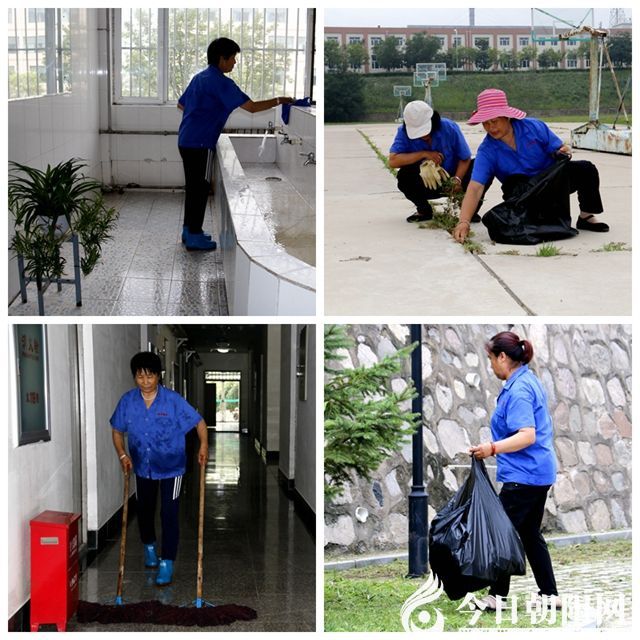 朝陽師專占地面積較大,在校師生人數(shù)眾多,物業(yè)人員的工作量相對較大。就公寓樓來說,每天一棟樓所產(chǎn)生的垃圾最少時10幾袋,最多時近30袋。按一袋50公斤算,12棟公寓樓及教學(xué)、公共場所等區(qū)域,一天所產(chǎn)生的垃圾量大約20噸??上攵?,保潔人員的艱辛程度。師專物業(yè)團(tuán)隊有保潔人員70人,除6位負(fù)責(zé)運輸工作的男隊員,其他64人都是女隊員。就是這些女性用柔弱的肩膀擔(dān)起了這份艱巨的任務(wù),她們以女性特有的勤奮、細(xì)膩與愛心辛苦勞作著,只為能給師生們提供一個整潔舒適的生活和學(xué)習(xí)環(huán)境。