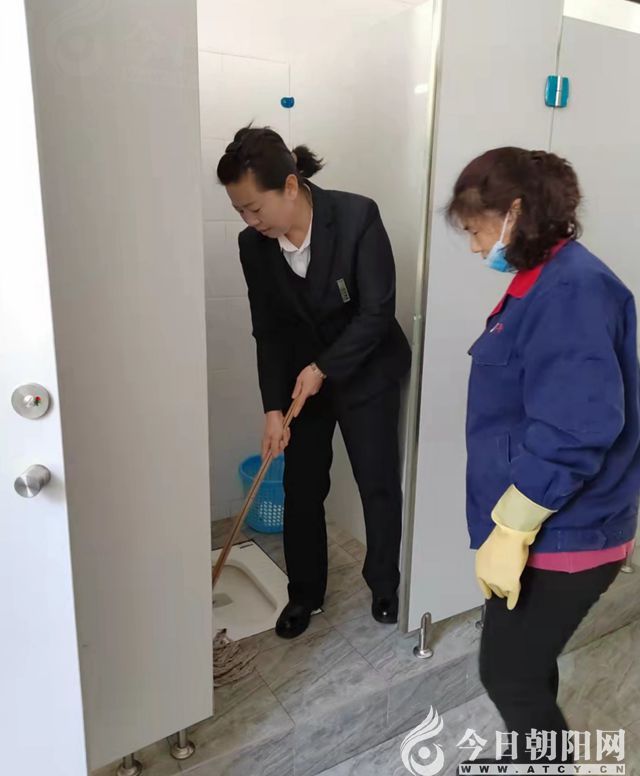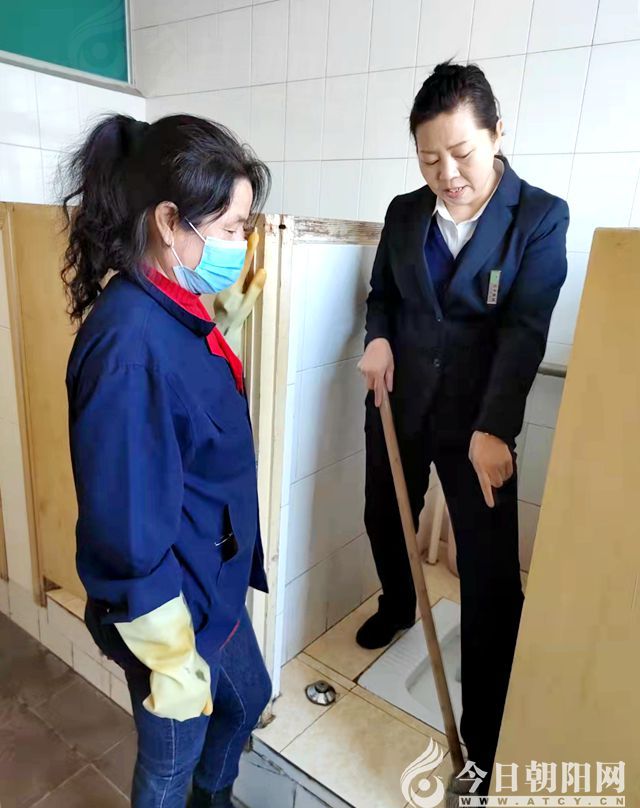 在朝陽市第四高級中學(xué)開荒保潔工作中,遇到了棘手難題。學(xué)校的男女生廁所經(jīng)過多年使用,地溝里沉積的尿漬達(dá)3公分厚,正常的清理方法已經(jīng)不起作用。于是,苗桂杰便不顧惡臭,下到溝里用鏟子一點一點地往下鏟,手上磨破的地方隱隱作痛,清廁劑和尿漬混合的味道嗆得她眼淚直流,喘不過氣來。但她沒有停下來,繼續(xù)堅持跪在溝里一寸一寸地鏟。在她的帶動下,姐妹們也都行動起來攻堅克難,在大家的努力下終于圓滿完成了任務(wù)。