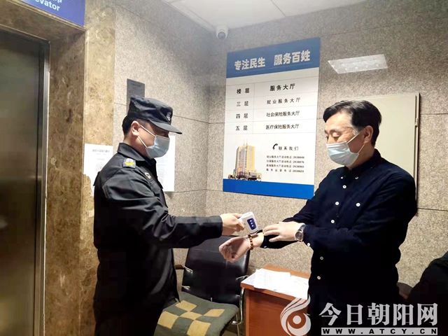 趙穎和褚云雪是大廈一樓大廳的兩名年輕保安員。疫情形勢(shì)變得嚴(yán)峻復(fù)雜后,她們每天都要穿著防護(hù)服,戴著手套、口罩上崗。為了避免麻煩,便選擇少喝水,以此來(lái)減少去廁所的次數(shù)。勞動(dòng)大廈有醫(yī)保、社保等多個(gè)部門(mén),每天接待前來(lái)辦理業(yè)務(wù)的人員2000余人,需要查驗(yàn)每名來(lái)辦業(yè)務(wù)人員的行程碼、健康碼,完整登記個(gè)人身份信息,還要及時(shí)提醒所有進(jìn)出大廈人員佩戴好口罩。雖然工作繁雜,但她們始終保持高度的熱情和耐心,與人交流時(shí)語(yǔ)氣和善,伴著得體的肢體語(yǔ)言,讓人有如沐春風(fēng)的感覺(jué)。