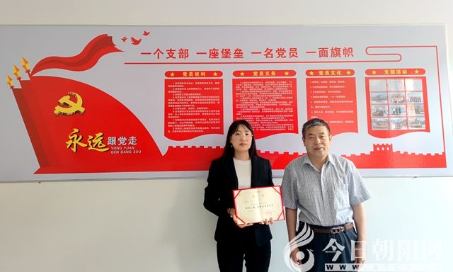 圖右為朝陽市互聯(lián)網(wǎng)行業(yè)黨委委員、今日朝陽黨支部書記楊廣大,圖左為劉雅賢