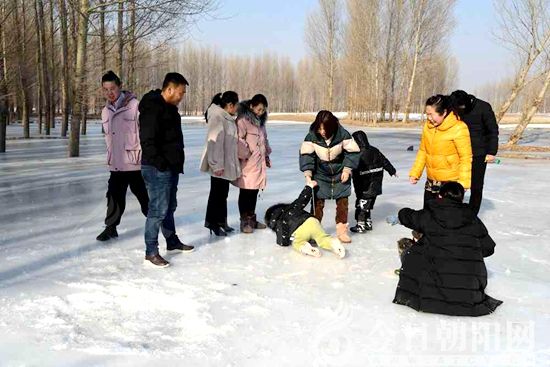 吃飯時(shí),二弟提議,2021年雨水充沛,小河結(jié)了大面積的冰,很美,過一會(huì)兒去小河滑冰,幾個(gè)小孩子都沒玩過冰。