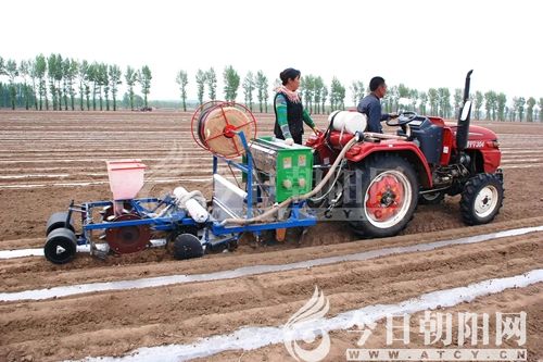 農(nóng)田里跑的鐵牛,不吃草,力大無比。一次播種兩條壟,起壟、點籽、施肥、撒除草劑、覆膜一次完成。