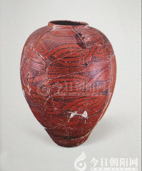 圖七:敖漢旗薩力巴出土的紅山文化彩陶罐這類陶甕出土也很多,有些是垂腹小口,均與儲(chǔ)酒相關(guān)。這類彩陶甕還有一個(gè)值得注意的現(xiàn)象,就是一面畫彩,另一面空白不畫彩,典型的如赤峰市阿魯科爾沁旗出土的那件著名的彩陶罐,其腹部一面繪有網(wǎng)格紋、龍紋、花瓣紋三種紋,另一面為空白。此類不是獨(dú)例,分別在赤峰市玉源博物館等非國(guó)有制博物館見有三件。這種現(xiàn)象似乎在說明甕擺好位置即不再搬動(dòng)了,是專門精心制作的祭器?,F(xiàn)在可以理解為,盛滿酒擺放在相關(guān)的祭祀場(chǎng)所,完成一項(xiàng)莊重的祭祀活動(dòng),即以酒祭天地,祭祖神。