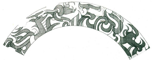圖十:內(nèi)蒙古白音長(zhǎng)汗遺址M7出土的石熊首2、趙寶溝文化的四靈圖