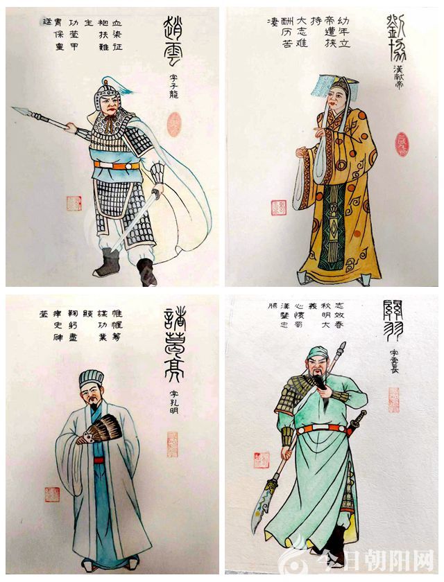 劉玉旻的舅舅是位農(nóng)民畫家,他從小受舅舅潛移默化的影響,非常喜歡畫畫。上學(xué)時酷愛圖畫課,繪畫成了他童年最大的樂趣?;謴?fù)高考后,他努力復(fù)習文化課,希望考入魯迅美術(shù)學(xué)院系統(tǒng)學(xué)習繪畫藝術(shù)。雖然未能如愿有些遺憾,但是劉玉旻并沒有放棄繪畫。特別是《三國演義》電視劇的熱播,一個個鮮活人物呼之欲出,令劉玉旻迫切地想把《三國演義》中的人物畫出來。為此,他查閱了大量有關(guān)三國人物的資料,尤其是《三國志》《三國演義》《三國史話》《后漢書》等名著,他捧在手中反復(fù)閱讀,潛心研究,揣摩人物,希望將《三國演義》群雄畫像呈現(xiàn)給人們。