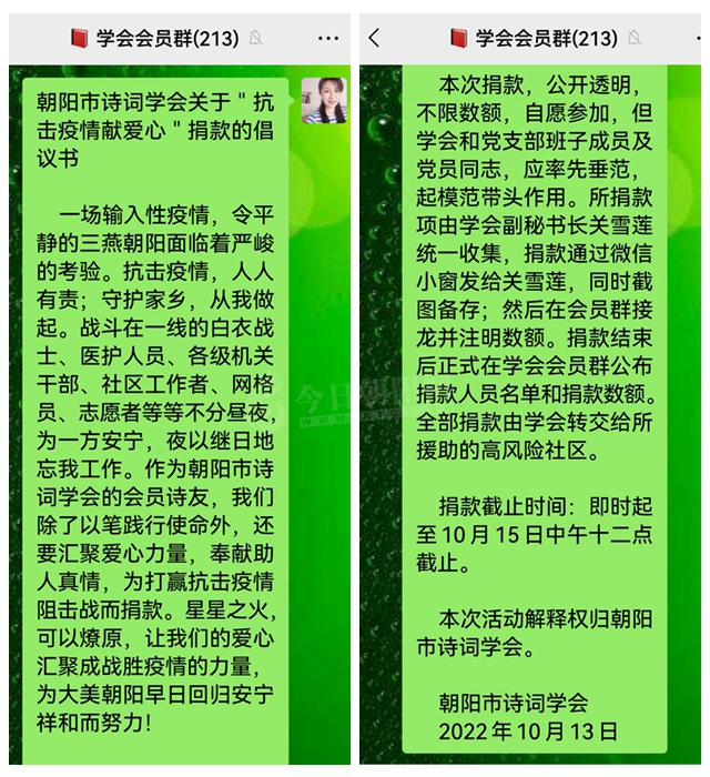 朝陽市詩詞學(xué)會:群中籌善款,戰(zhàn)“疫”顯擔(dān)當(dāng)!