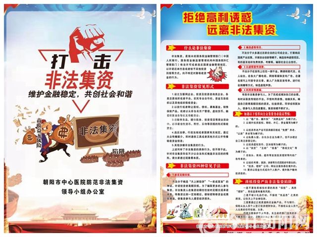 一直以來,朝陽市中心醫(yī)院高度重視防范非法集資宣傳工作,結(jié)合醫(yī)院實際,全方位、多角度開展防范非法集資宣傳,引導(dǎo)公眾主動遠離非法集資,守住自己的錢袋子。
