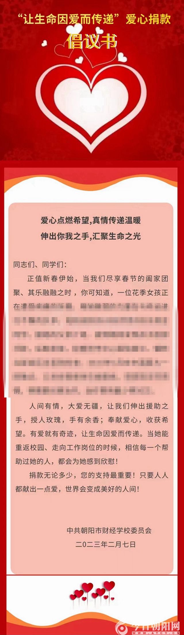——朝陽市財經(jīng)學(xué)校全體師生捐款救助患病學(xué)生