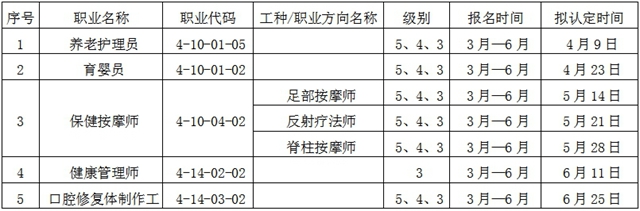 根據(jù)遼寧省人力資源和社會(huì)保障廳《關(guān)于做好遼寧省職業(yè)技能等級(jí)認(rèn)定社會(huì)培訓(xùn)評(píng)價(jià)組織遴選技術(shù)評(píng)估工作的通知》(遼人社函〔2021〕53號(hào))和遼寧省人力資源和社會(huì)保障廳《關(guān)于同意朝陽市衛(wèi)生學(xué)校開展職業(yè)技能等級(jí)認(rèn)定工作的函》文件精神,結(jié)合社會(huì)服務(wù)需求,遼寧省朝陽市衛(wèi)生學(xué)校擬開展育嬰員、養(yǎng)老護(hù)理員、保健按摩師、健康管理師、口腔修復(fù)體制作工5個(gè)職業(yè)工種技能等級(jí)認(rèn)定工作,現(xiàn)將有關(guān)事項(xiàng)公告如下: