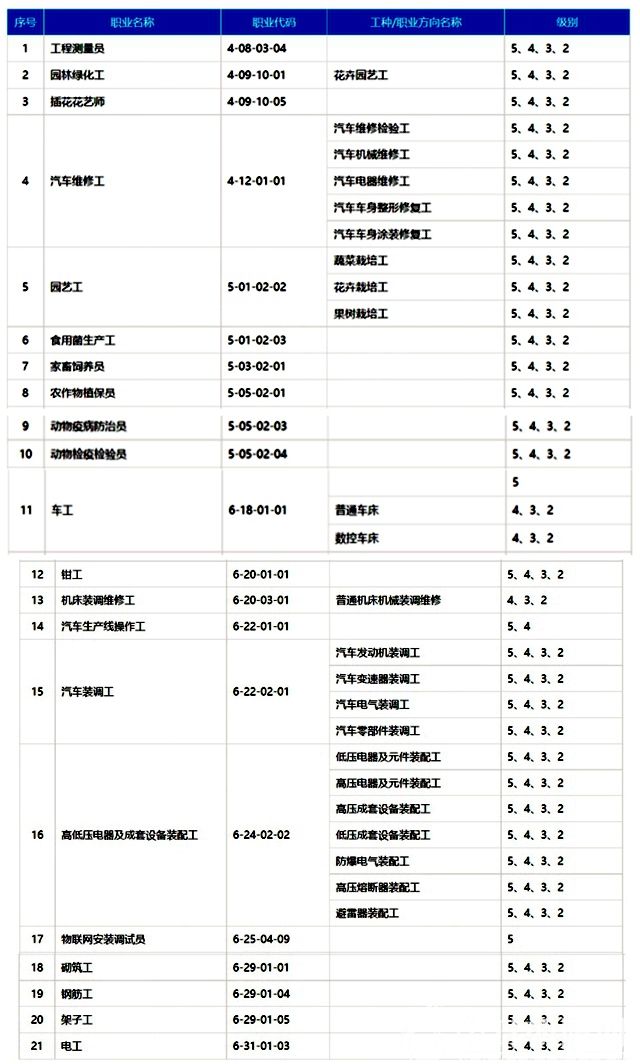 一、職業(yè)技能等級(jí)認(rèn)定職業(yè)(工種)目錄及報(bào)名時(shí)間