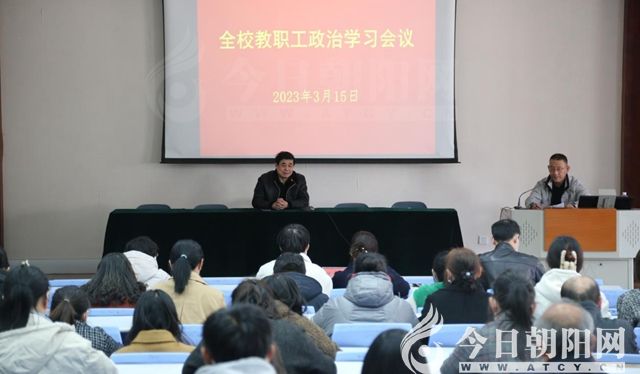 為深入學習貫徹黨的二十大精神,進一步加強師德師風建設,3月15日,遼寧省朝陽工程技術學校組織全體教職工在10號樓一樓階梯教室進行政治學習,觀看“時代楷模”曲建武教授專題報告會視頻。黨委書記、校長武鐵兵參加會議并講話。會議由黨辦主任張洪利主持。
