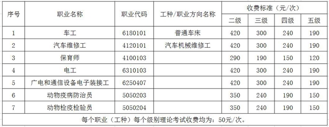 說(shuō)明:本收費(fèi)標(biāo)準(zhǔn)中含理論知識(shí)和技能考試費(fèi)用。