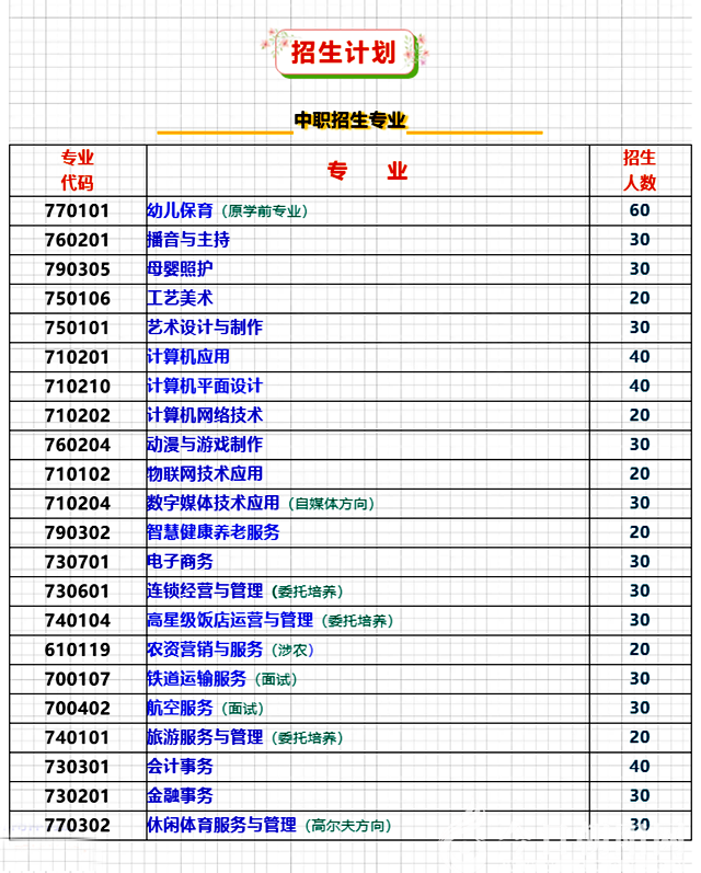 中職招生:應往屆初、高中及中職、技校畢業(yè)生,普通高中高一、高二(上學期)在校學生