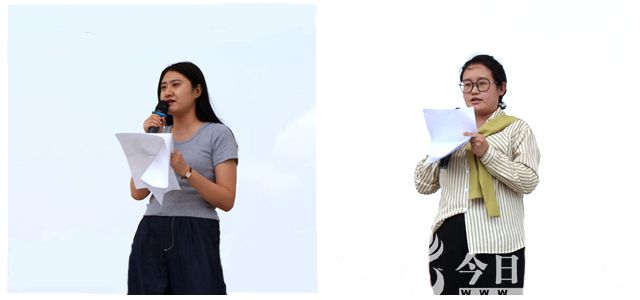 教師代表閆美辰(左)班主任代表兼心理健康老師孫明月(右)發(fā)言