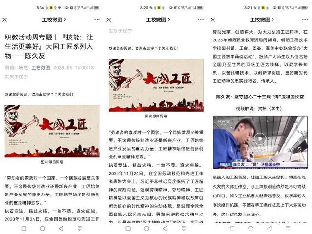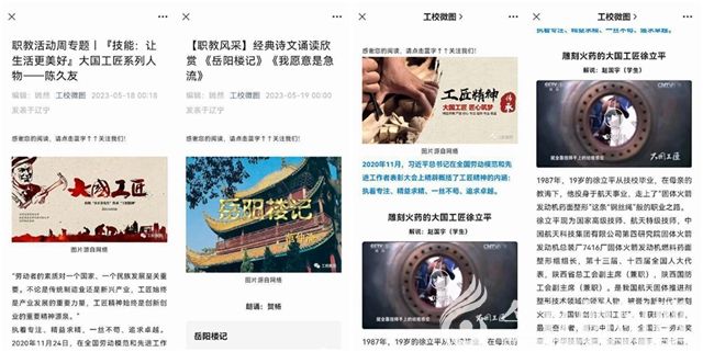 為大力宣傳職業(yè)教育領(lǐng)域涌現(xiàn)的時代楷模、最美人物、大國工匠、能工巧匠,展示新時代職教師生的奮進風采,學校組織開展了校園朗讀比賽,讓師生讀大國工匠故事,誦中外名家經(jīng)典,并在學校圖書館公眾號“工校微圖”發(fā)布朗讀比賽作品,有效增強了職業(yè)教育的吸引力。