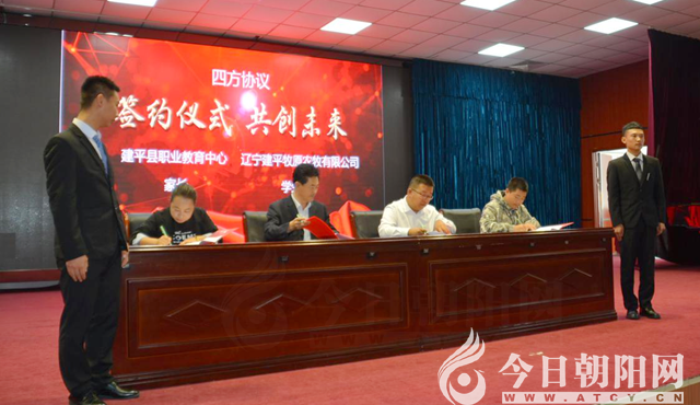 現(xiàn)代學徒制“牧原班”開班儀式現(xiàn)場,學生、家長、學校、企業(yè)聯(lián)合簽訂人才培養(yǎng)四方協(xié)議,形成校、企雙主體合作育人模式。