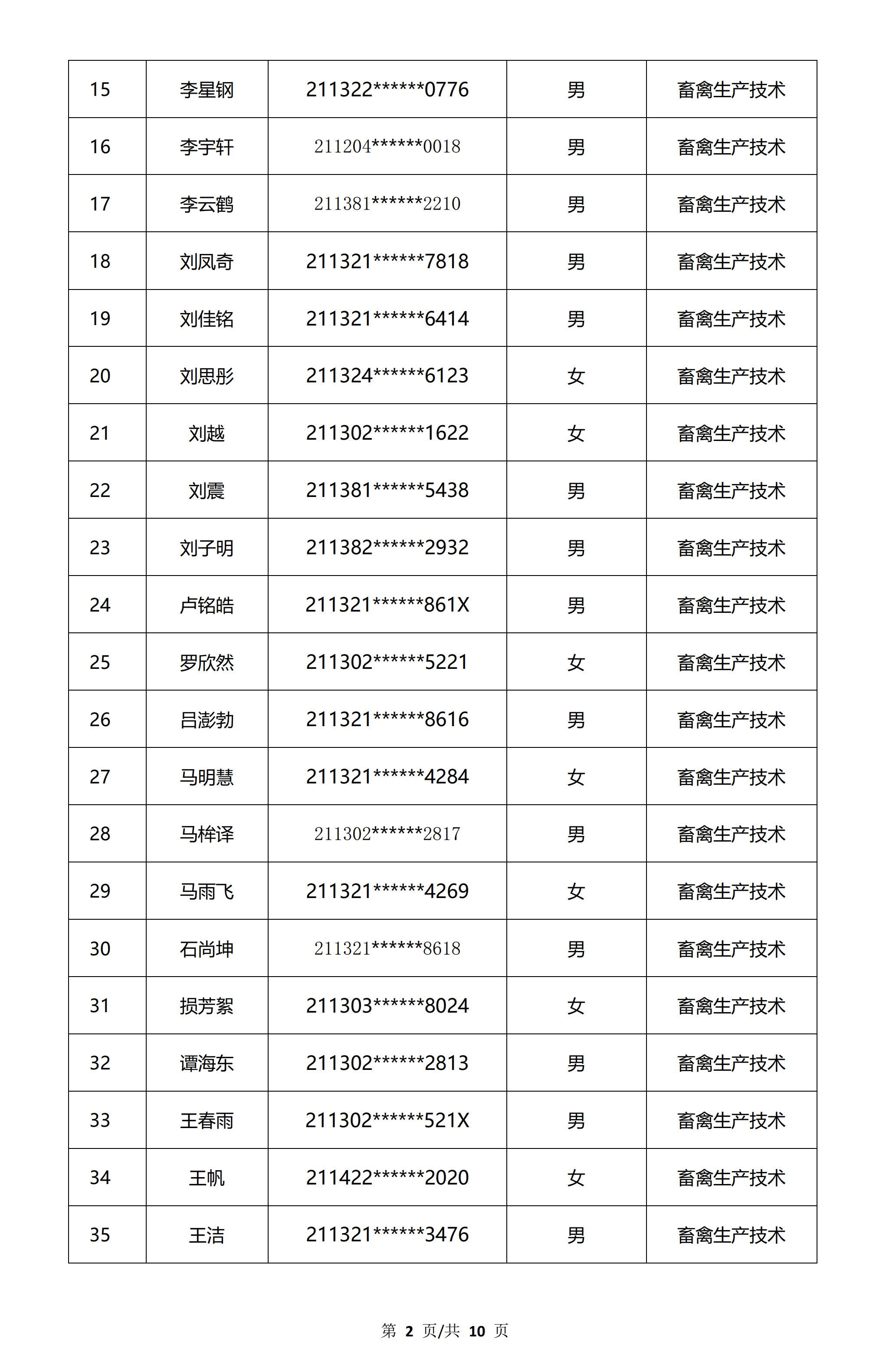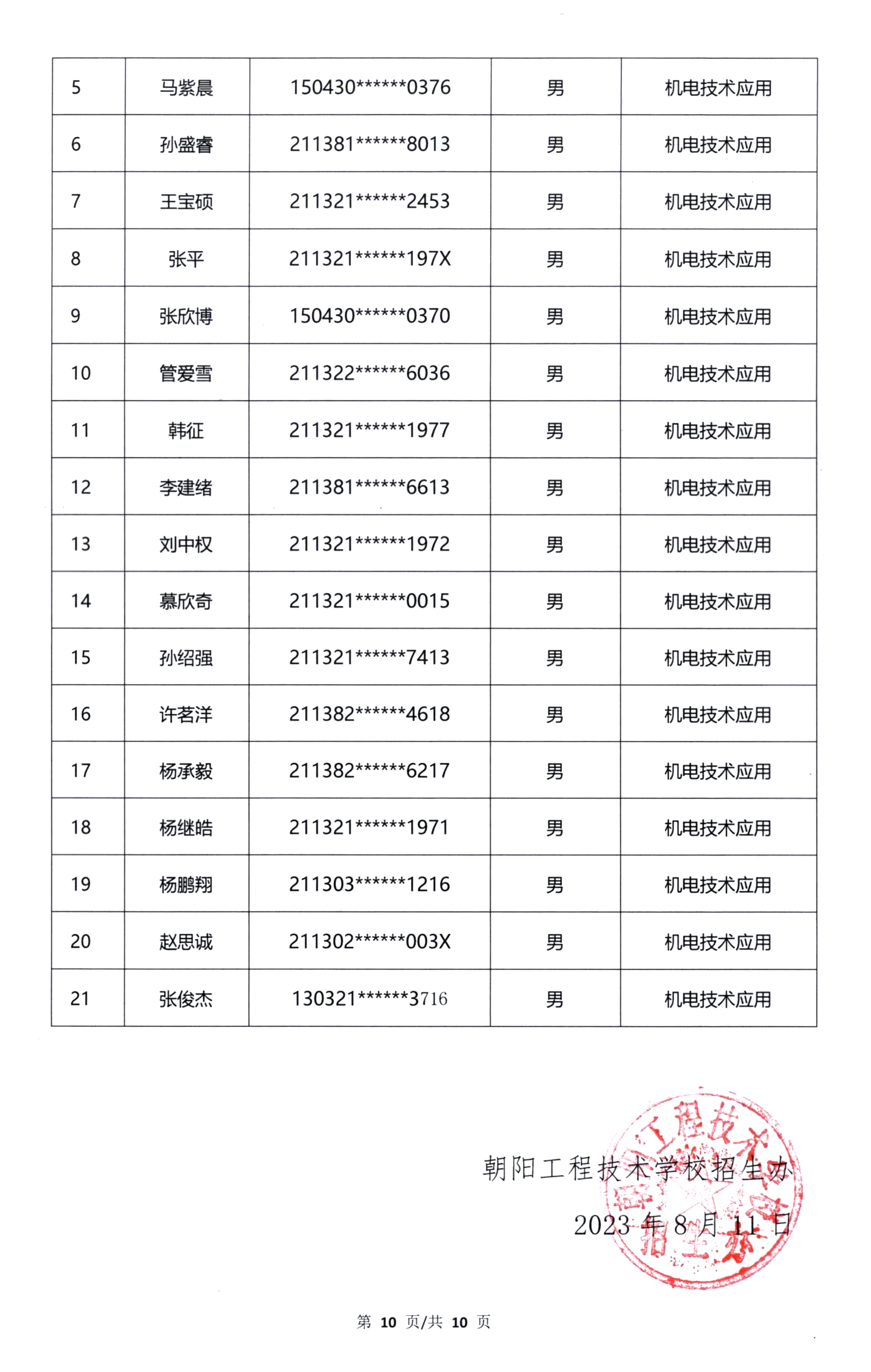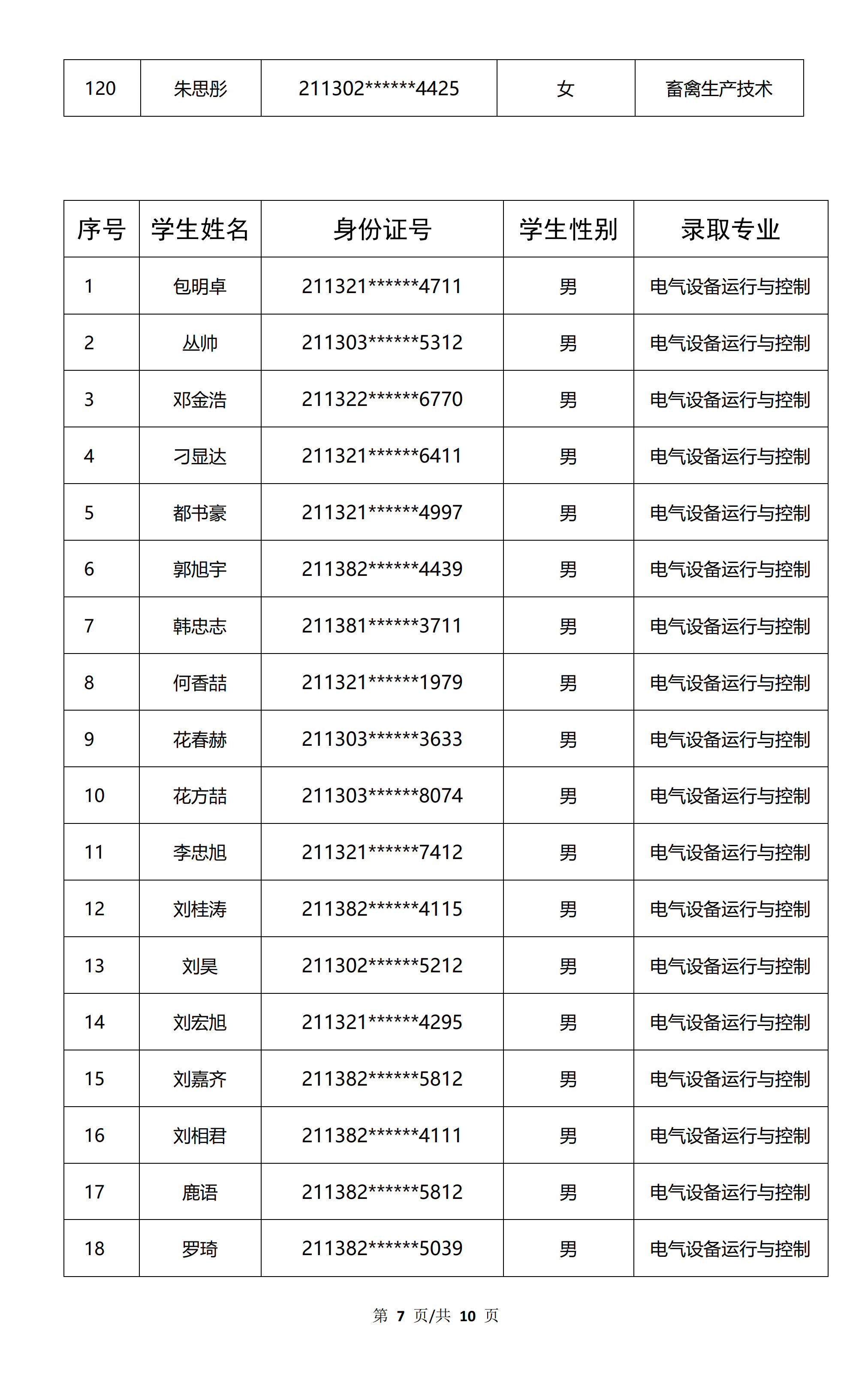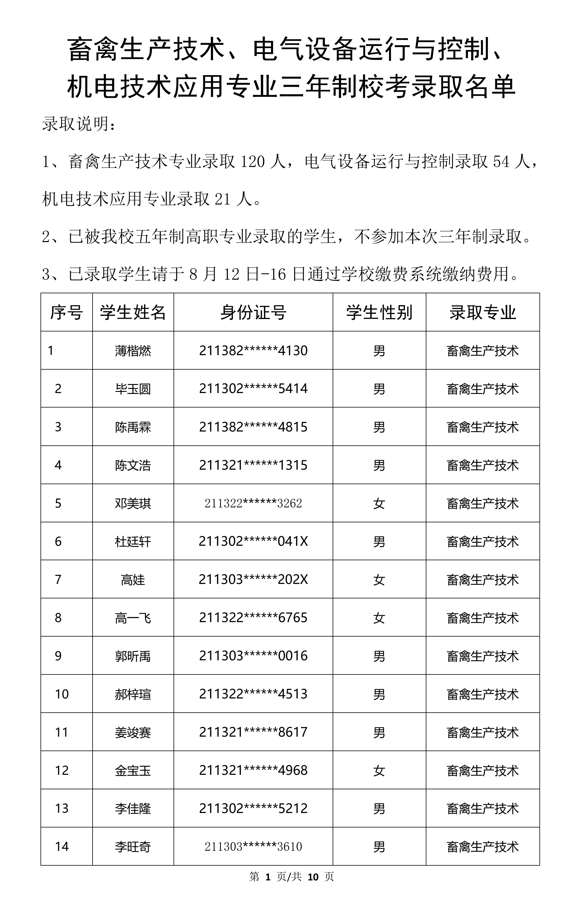 速看!朝陽工校畜禽生產(chǎn)技術(shù)、電氣類專業(yè)錄取學(xué)生名單公布