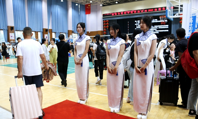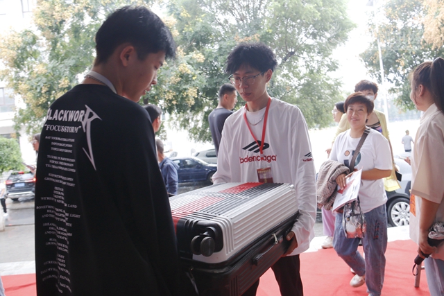 迎賓人員身穿禮服,滿面春風(fēng);志愿者掛著胸牌,笑容可掬,熱情周到。他們穿梭在人流中,領(lǐng)路、搬運行李、講解入學(xué)流程;學(xué)校領(lǐng)導(dǎo)現(xiàn)場檢查指導(dǎo),開學(xué)工作安全、有序、順利開展。