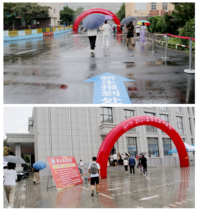 一場雨不期而至,但這沒有影響迎新工作的正常開展。迎新工作人員、志愿者各就各位,隨著新生的陸續(xù)到來,校園處處演繹著溫情序曲。
